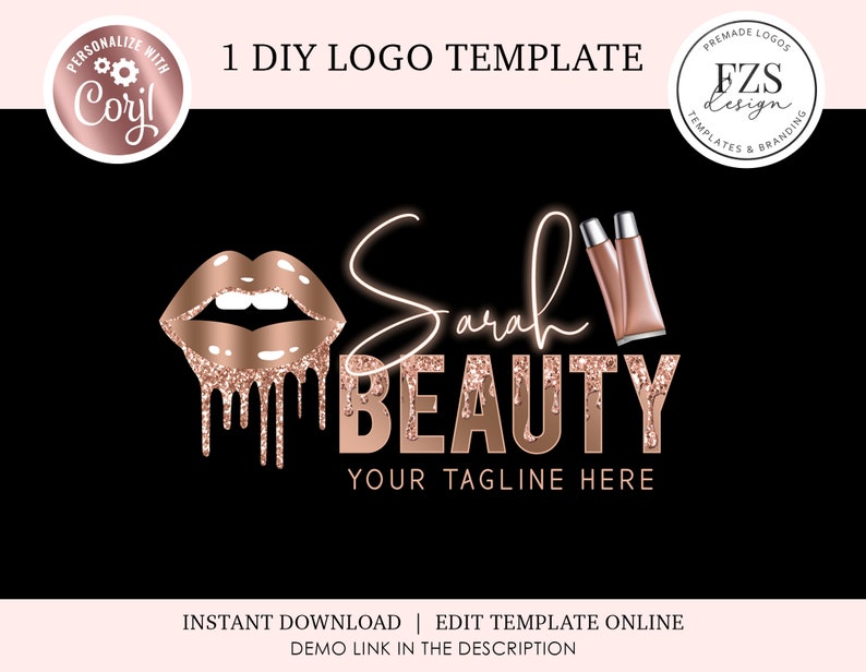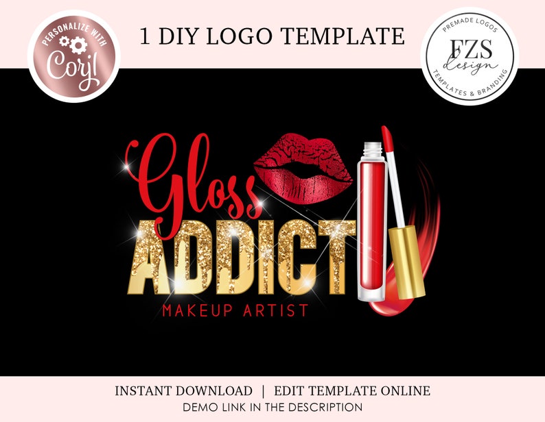 LIP GLOSS LOGO lip gloss logo template editable lipstick | Etsy in 2021 | Logo templates 17